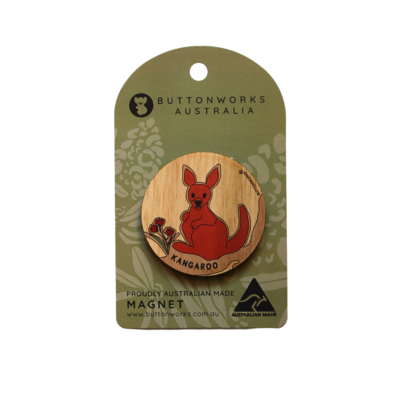 Wooden magnet featuring a cute Australian kangaroo!