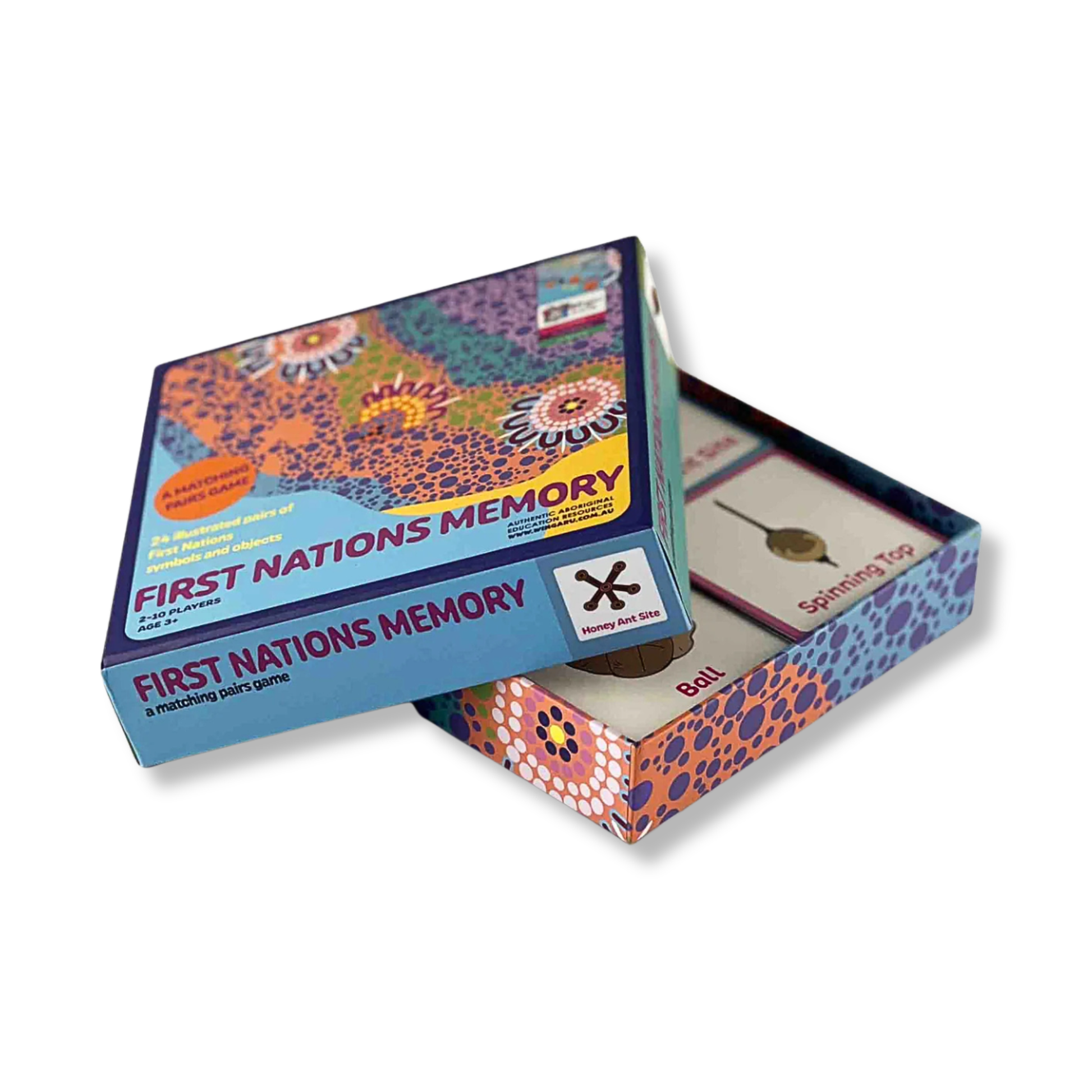 Beautifully illustrated, this game encourages players to learn about First Nations people, culture and histories, while developing social skills such as taking turns and communicating with other players.