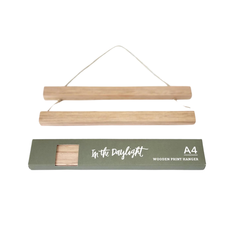 In The Daylight wooden print hangers are a quick and simple way to bring your favourite print to life on your walls. They are designed and made in Australia from beautiful Victorian Ash with strong magnets to hold the print in place and hung with quality 100% cotton twine. A great alternative to bulky frames, our hangers mean you are able to switch art prints with ease. No tools needed!